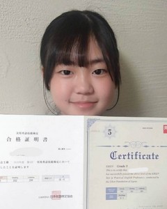 試験の時は緊張したけど、英検5級に備えて勉強していたので、少し自信を持ってできました。 合格した時はうれしかったです。 英検4級も勉強を頑張って合格したいです。
